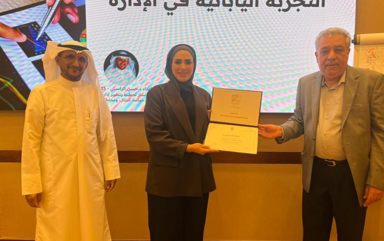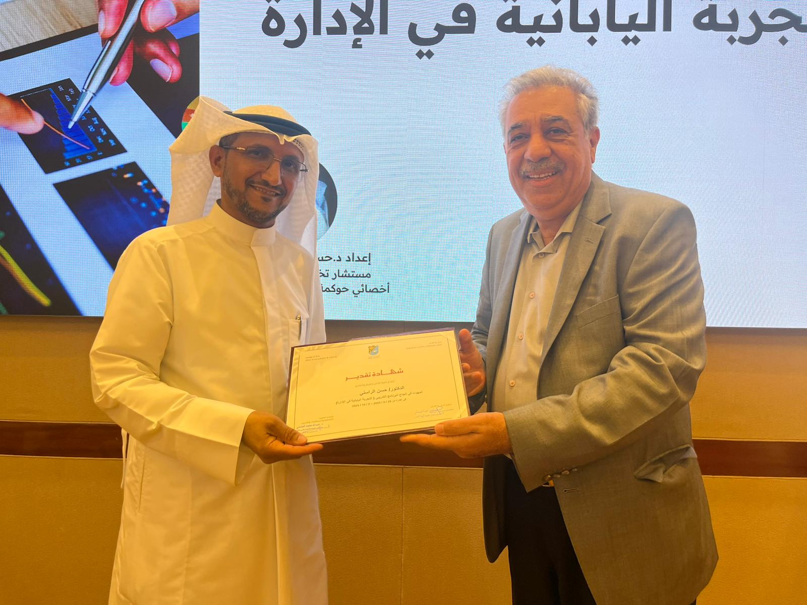 Under the patronage of Acting Assistant Dean for Planning, Consultation, and Training, Prof. Abdullah Al-Jasmi, the Office of Consultation and Training at the College of Arts, Kuwait University, concluded the training course titled “The Japanese Experience in Management”, organized for the Public Authority for Agriculture and Fisheries. The course was held from September 28 to October 2, 2025, at the Jumeirah Hotel.